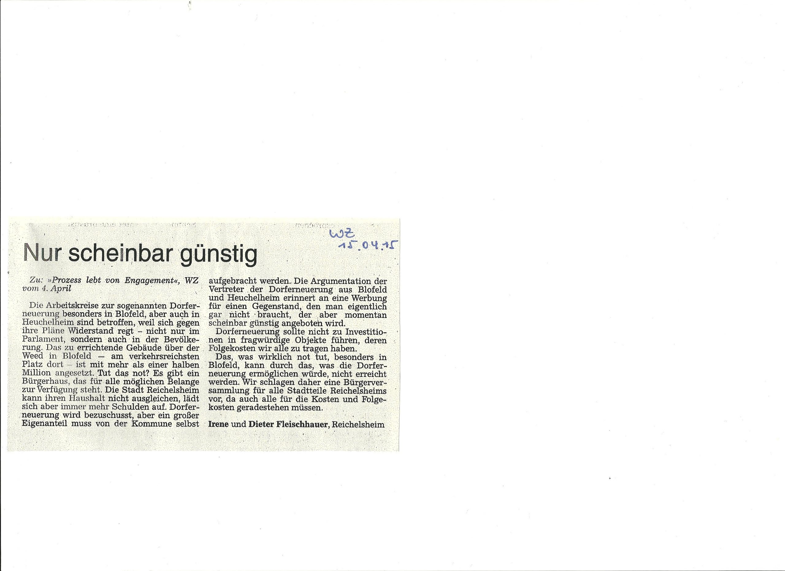 2015-04-15 WZ Leserbrief Nur scheinbar günstig
