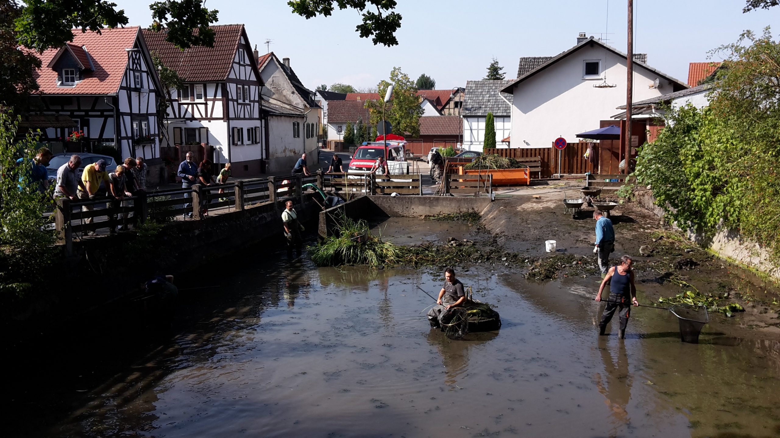 Abfischen der Weed zusammen mit dem Angelsportverein Dauernheim und der Freiwilligen Feuerwehr Blofeld