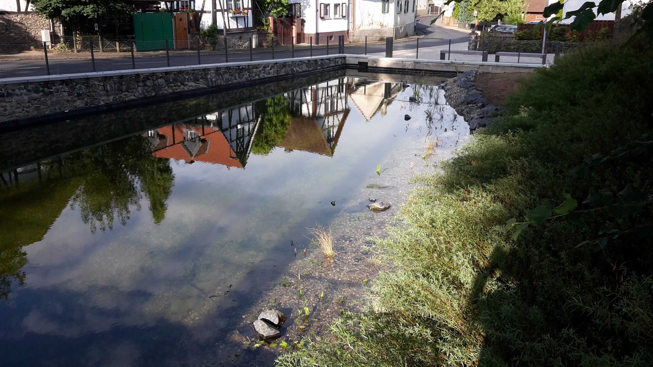 (21.07.22) Der gesamte Flachwasserstreifen am Nordufer der Weed ist neu bepflanzt worden. Dieser nur sehr flache Wasserstreifen soll ständig unter Wasser stehen und Amphibien eine neue Heimat geben. Sinnvoll ist solch ein Flachwasserstreifen auch für die „automatische“ Reinigung des Weedwassers von Schadstoffen. Diese Wirkung wird sich erst in ein paar Jahren entfalten, wenn die Wasserpflanzen vollständig angewachsen sind und dicht stehen.