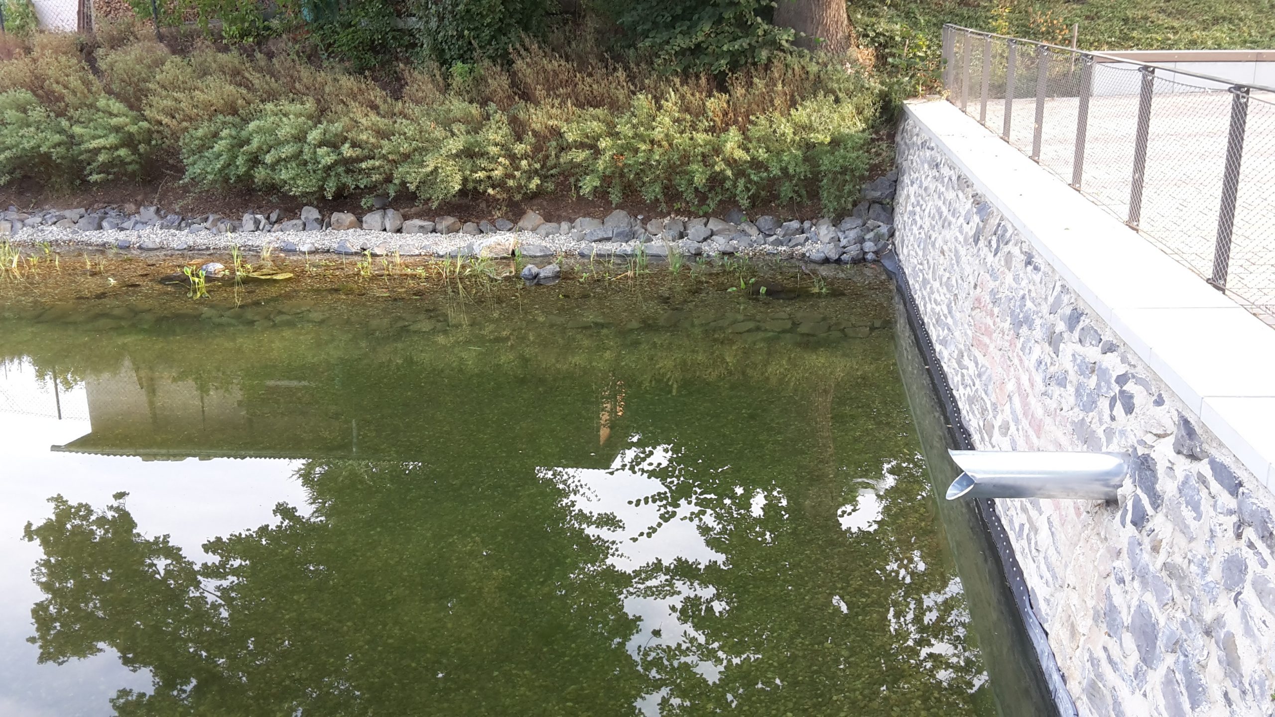(04.08.22) Die Drainage vom Oberfeld mündete bislang mit einem grünen Entwässerungsrohr in die Weed. Nun hat der Reichelsheimer Bauhof einen Auslauf aus Edelstahl eingebaut. Damit wird auch verhindert, dass das Drainagewasser direkt an der Mauer herunterfließt, sich dort Moose ansiedeln und die Mauer zeitweise durchfeuchtet ist.